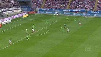 就在沃尔夫斯堡队险些打破僵局之际,法兰克福队在第30分钟打破了场上僵局。中场核心赵宇送出精准直塞,前锋阿莱插上形成单刀赴会,面对出击的门将,阿莱冷静地将球送入空门,法兰克福队1-0领先。